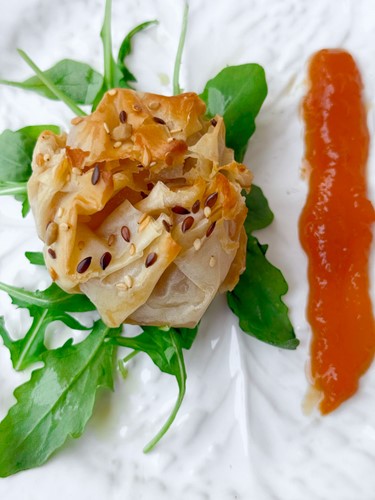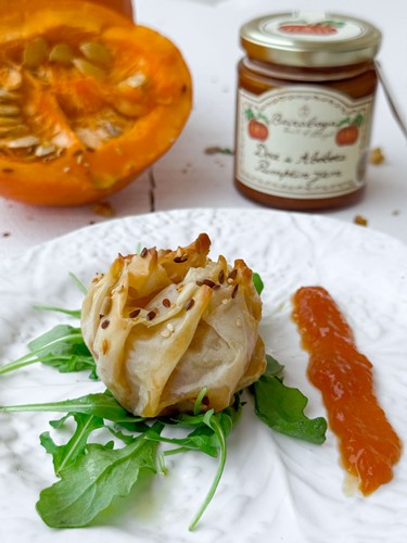 Folhados de massa filo com Brie e doce de abóbora
